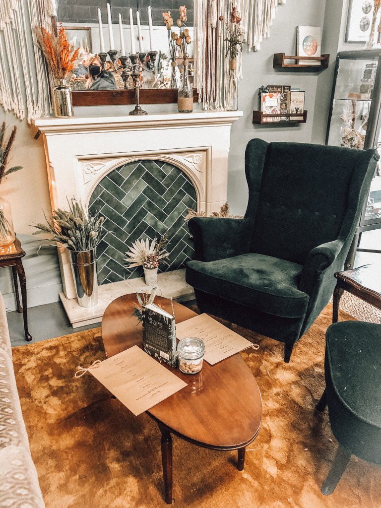 I have to share this tea with you! If you’re local or you’re popping to Hull anytime soon, Ophelia flowers and tea is now open, yay! I popped down to their soft opening last Sunday ahead of their opening this week. They are a loose leaf and dried flower shop and it’s the cutest place on Humber Street… look at this cosy reading spot!!
