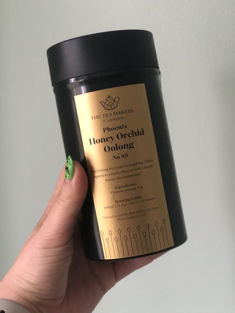 I’m a big fan of loose leaf teas and I have sampled quite a lot of different oolongs, both in bag form and loose leaf. This ‘Phoenix Honey Orchid Oolong’ (Tea No 89) from The Tea Makers is like nothing else I’ve tried, from either big brands or in speciality tea rooms. Firstly, when I opened the tin (which I think is gorgeous to look at and for shelf decor!) the first thing that hit me was the aroma of smokiness and of sweetness. It just felt like the absolute perfect accompaniment to the weather and to the book vibes! Dark, smoky but with a side of sweetness.